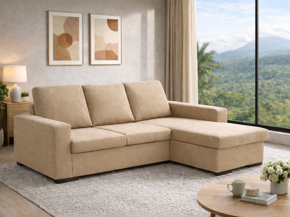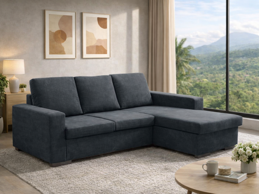 Uma chaise longue de 190x140cm com chaise reversível é um móvel versátil e prático para espaços de convivência. A característica reversível da chaise permite adaptar a configuração conforme necessário, proporcionando flexibilidade no layout da sala. Ideal para ambientes compactos, combina conforto com funcionalidade, podendo ser ajustado para se adequar às diferentes necessidades do espaço.